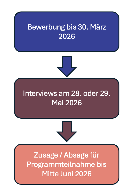 Finale Zusage/Absage zum Programm: Bis spätestens Mitte Juni 2026 erhalten Sie die Zusage oder Absage zur Aufnahme ins Programm.