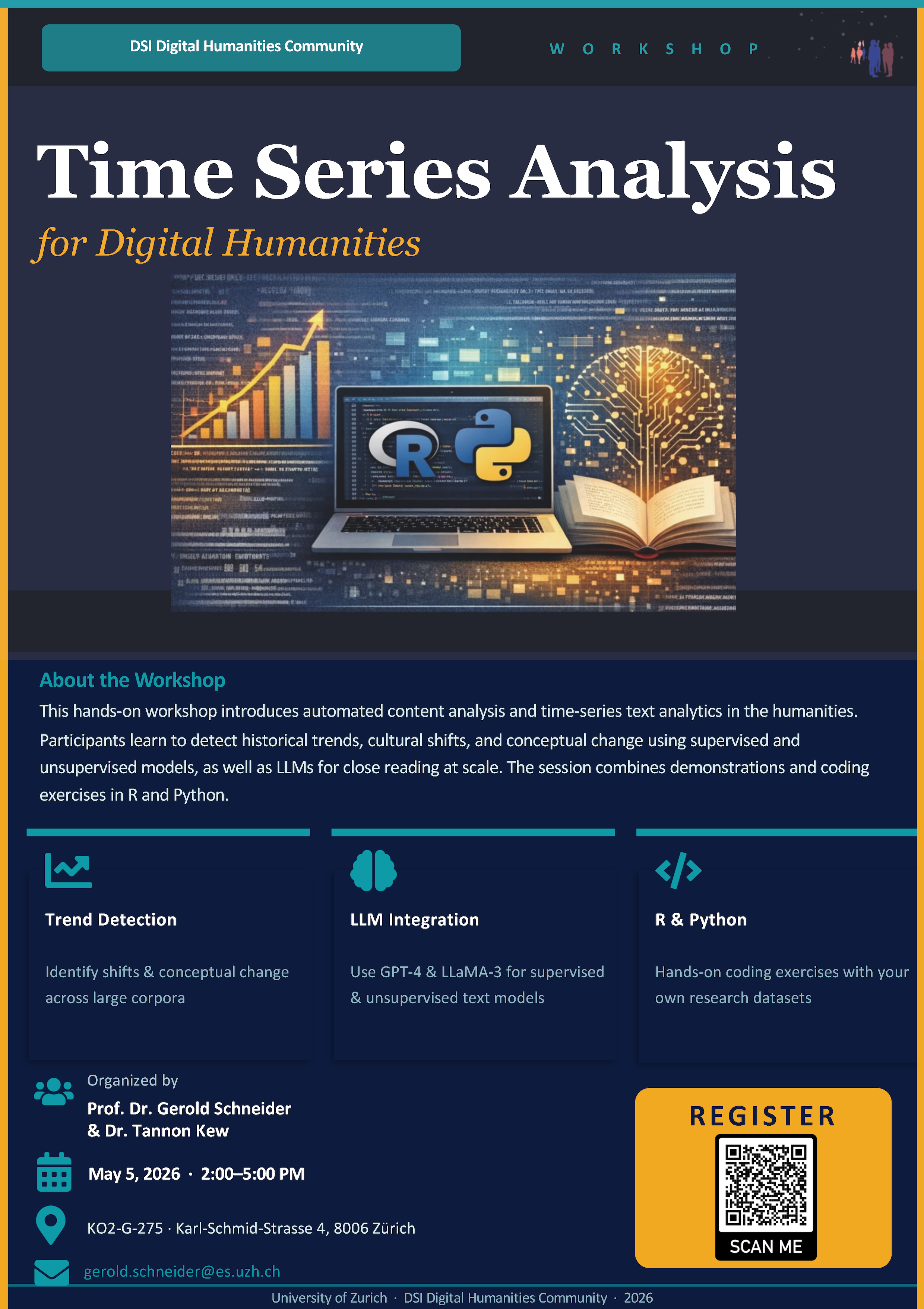 The DSI Community Digital Humanities is pleased to invite you to this workshop which is organized in collaboration with Prof. Dr. Gerold Schneider and Dr. Tannon Kew.